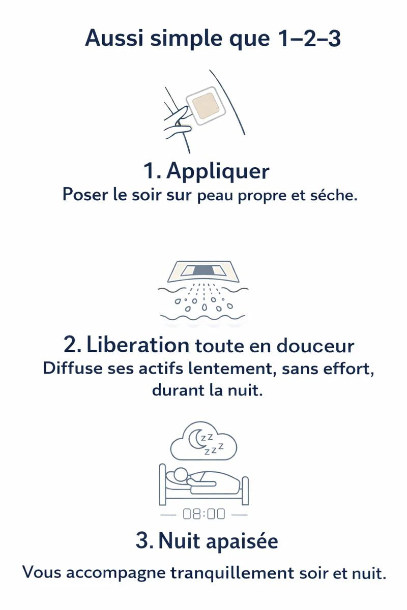 Le patch a été conçu pour accompagner le sommeil sans hormone, afin d’éviter les effets de dépendance ou de dérèglement du rythme naturel.