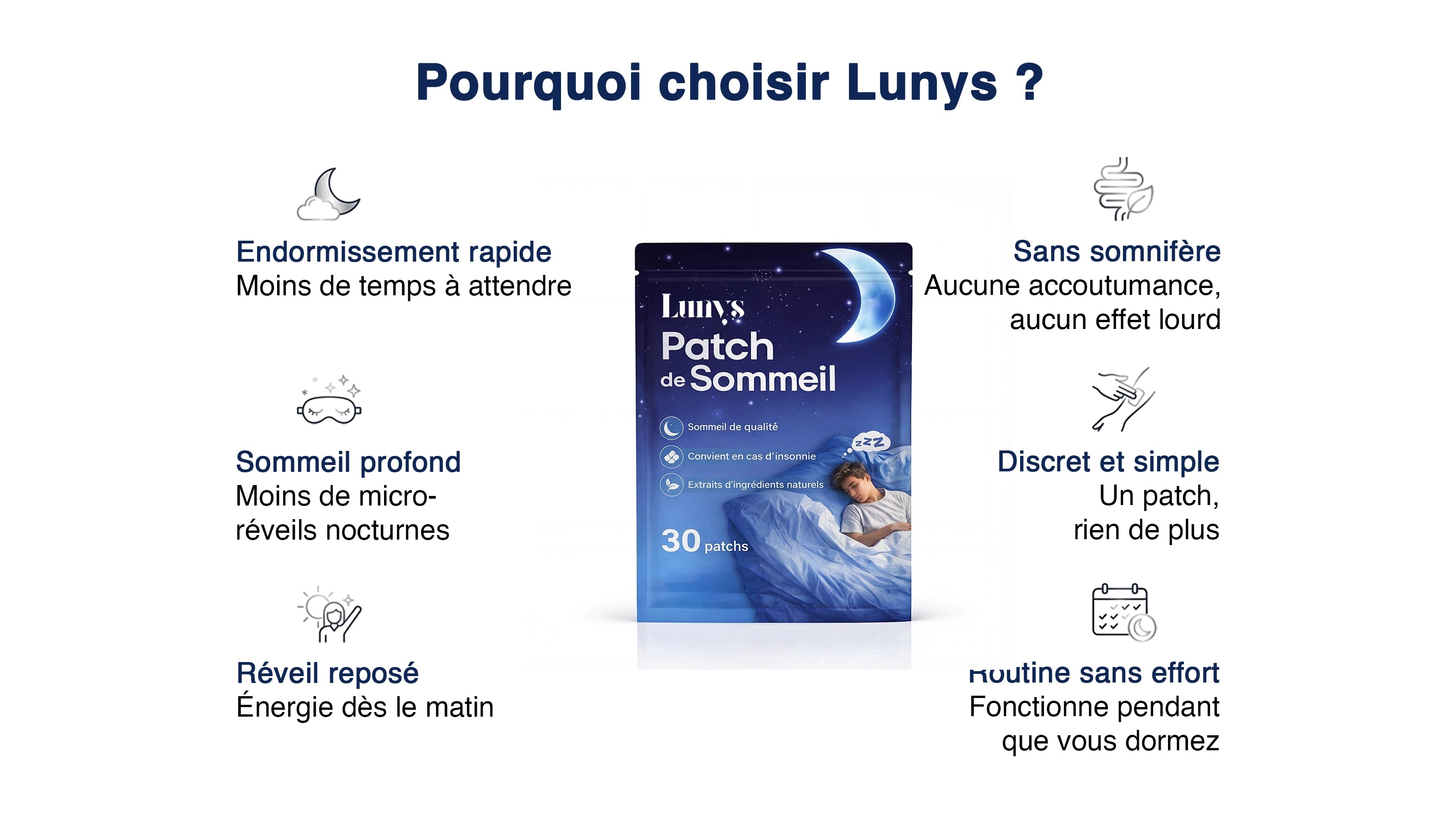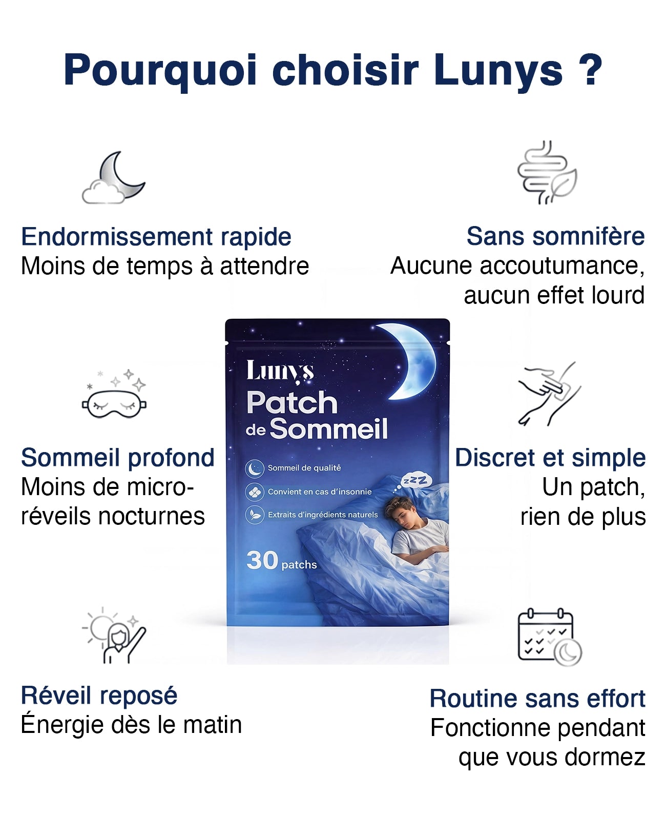 Lunys est un patch de sommeil doux qui agit directement sur la peau — sans rien avaler.